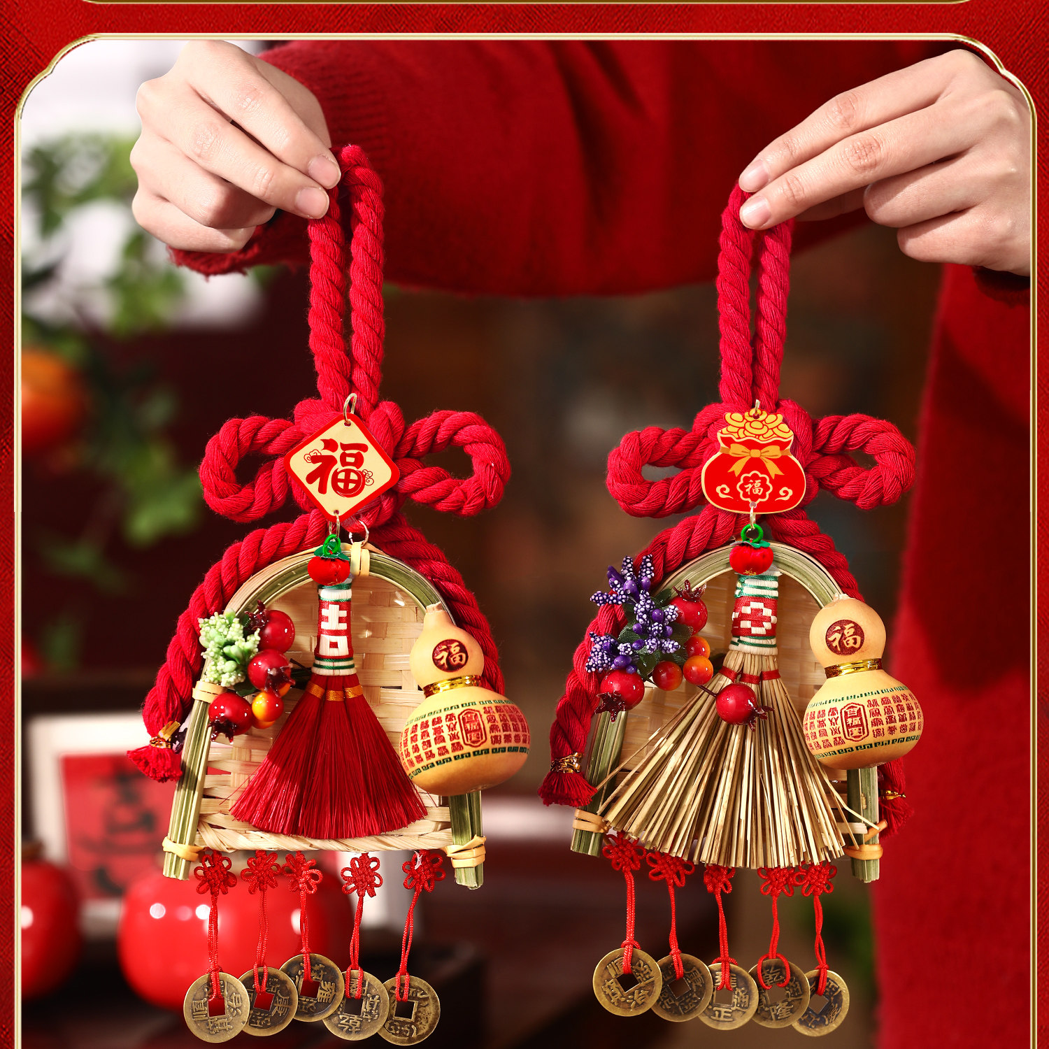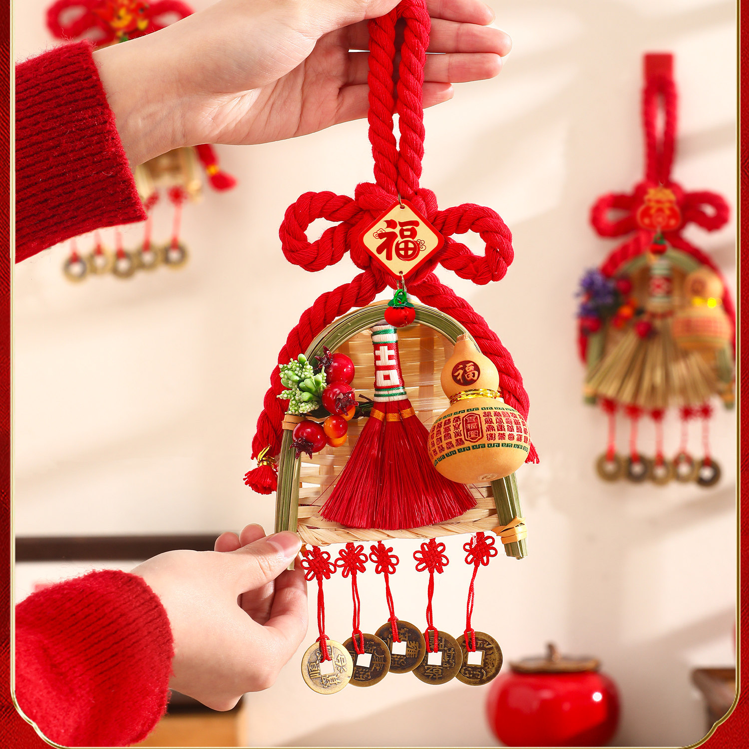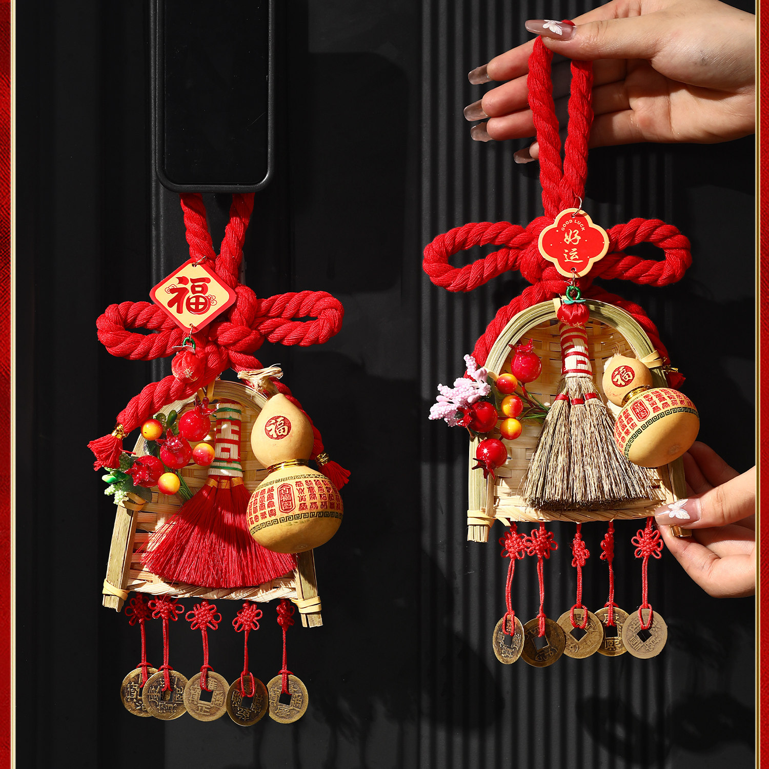 🏮萬字結「萬事如意、萬福萬壽、生生不息」 🧹掃把象徵「掃走穢氣、掃來福運」✨馬年加持「馬到成功、福運連連」💖手工編織 尺寸小巧 材質安心👍